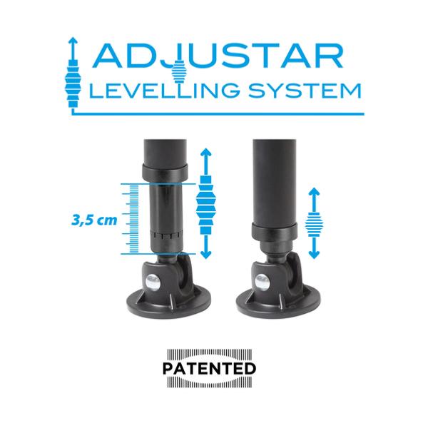 Optimisée pour la polyvalence et la facilité d'installation, la table est dotée de pieds réglables en hauteur et d'un système de mise à niveau "Adjustar" sur l'un des pieds qui assure une surface stable et plane même sur un terrain irrégulier. Fabriqué à partir d'un panneau Severin ultra-léger, le plateau de la table offre un aspect moderne et élégant qui convient à tout espace extérieur. Un filet de rangement pratique et un sac de transport sont inclus pour faciliter le transport et le stockage.