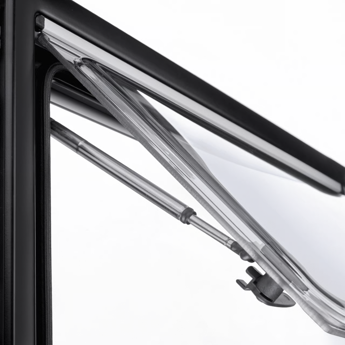 Baie structurée Dometic S4 en polyuréthane avec contre cadre équipé d'un store enrouleur intégré et d'une moustiquaire pour camping-cars, fourgons aménagés et caravanes.