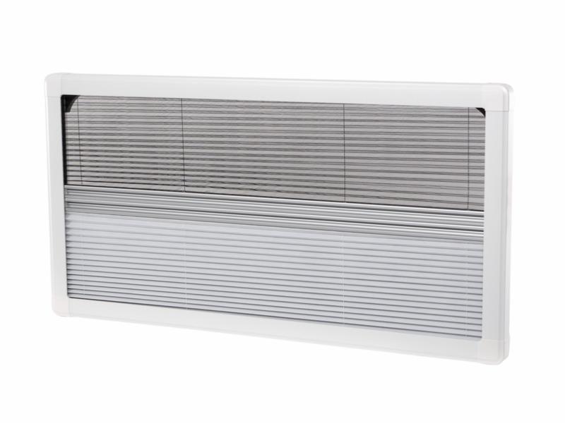 CADRE INTÉRIEUR BLANC AVEC STORE ET MOUSTIQUAIRE PLISSE POUR FENETRE BATTANTE "COMFORT" DE CARBEST 942 x 542 MM