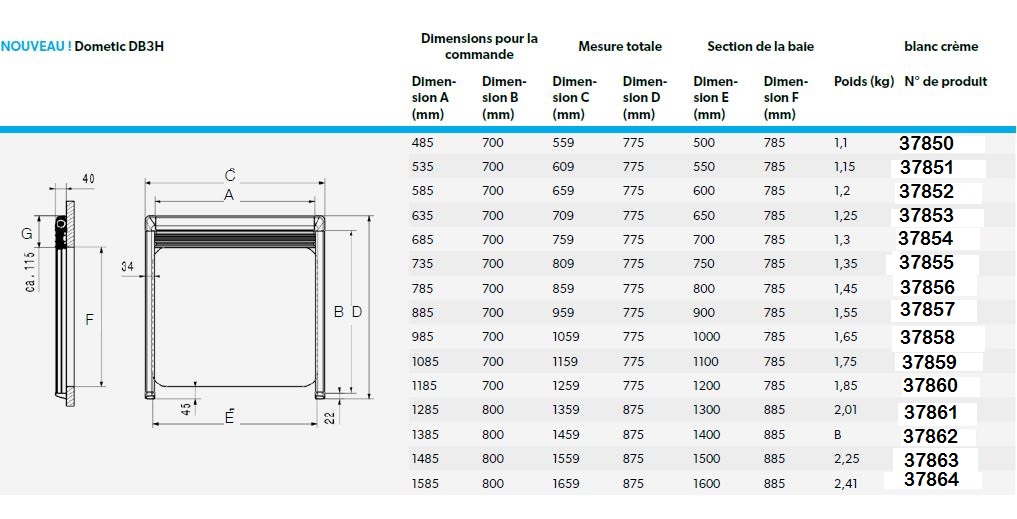 Disponible en 15 dimensions différentes, voir le tableau et les autres tailles de store ci-dessous :