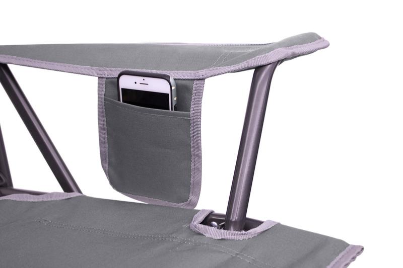 Fabriquée avec des matériaux durables, elle est conçue pour résister aux conditions extérieures tout en offrant un soutien solide. L'assise en maille assure une bonne ventilation, idéale par temps chaud. De plus, la chaise est équipée d'une sangle de transport intégrée, et d'un sac pour faciliter son rangement et son transport. Un porte-gobelet et une poche pour téléphone situés sur les accoudoirs vous permettent de garder vos essentiels à portée de main.