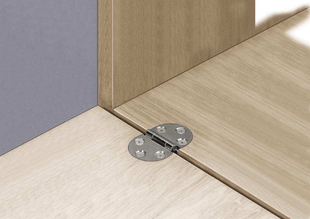 Charnière à ouverture plate pour fabrication de table à plateau pliant.