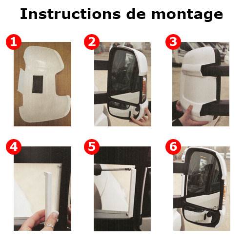- La mise en place est à la portée de tous. Deux vis de serrage et une languette assurent le parfait maintien de ces accessoires qui bénéficient de toutes les certifications. Ils sont disponibles dans deux couleurs, blanc et noir, et sur les rétroviseurs à bras longs qui équipent l'essentiel des camping-cars ou courts pour les fourgons aménagés.