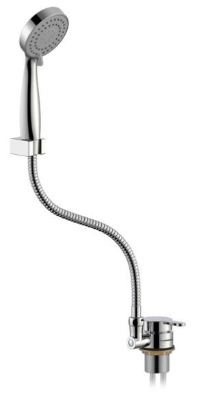 un mitigeur monocommande, une pomme de douche, un flexible de douche de 1,5 m et un support conique pour pommeau de douche