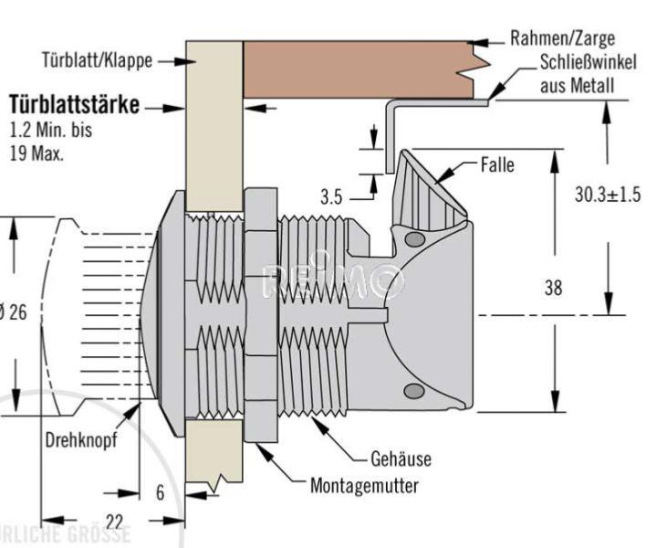 Serrure de meuble, bouton rotatif, Push-Lock, chromée