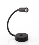 Lampe col de cygne LED COB élégante avec interrupteur marche/arrêt et connexion USB (5V 2.1A) dans la base. Bras flexible avec revêtement en silicone noir.