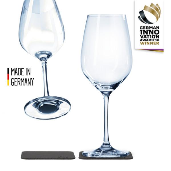 Nouveau sur le marché, la jeune start-up bavaroise révolutionne actuellement le marché mondial du verre grâce à son invention révolutionnaire! Fini les verres qui tombent et glissent durant vos trajets ! Idéal pour le camping et le bateau !