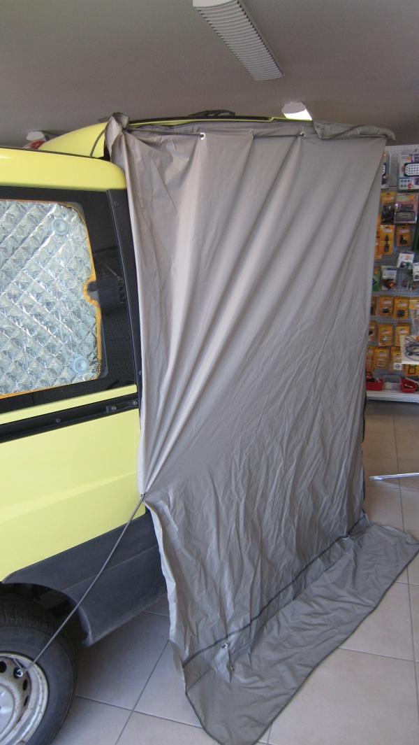 - Fixation du LUDOVENT, renforcée par du scratch (une partie cousue à même de auvent et l'autre autocollante pour fixer sous votre hayon)