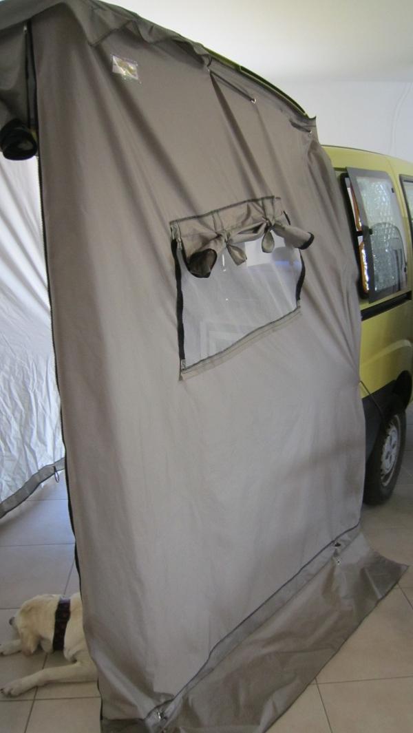 - Oeillets sur l'extrémité de la porte pour pouvoir faire une avancée ombragée à l'aide de piquets télescopiques (option)