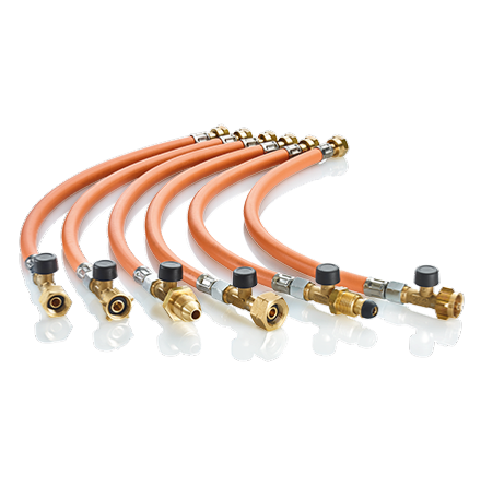 Les lyres haute pression d'origine Truma à sécurité de rupture sont donc indispensables et disponibles dans de nombreuses variantes répondant aux normes locales pour divers robinets de bouteilles et dans différentes longueurs.