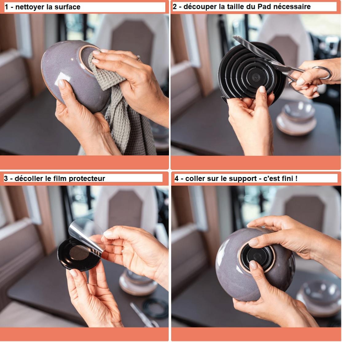 Vous adorez votre service à vaisselle, vos petits bols ou vos assiettes design… mais vous en avez assez que tout glisse, que ça claque ou que ça bouge à chaque virage, dans votre van, votre bateau ou même dans votre cuisine ? Le MagUp-Pad L noir est LA solution : un disque magnétique adhésif à coller sous votre vaisselle (assiette, bol, saladier…), qui les fixe délicatement et solidement sans aucun perçage.