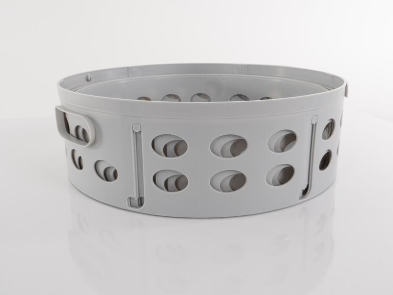 Le panier pliable à une poignée pratique et 2 poignées latérales. Le panier s'ouvre d'une seule main et se ferme en tournant la poignée sur le fond.