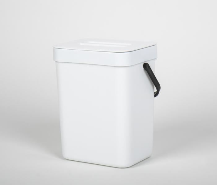 Poubelle 3l Blanche 15,6x12x20,5cm, avec couvercle, à suspendre à la porte