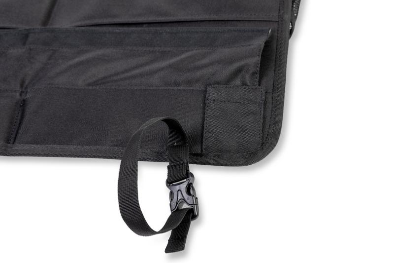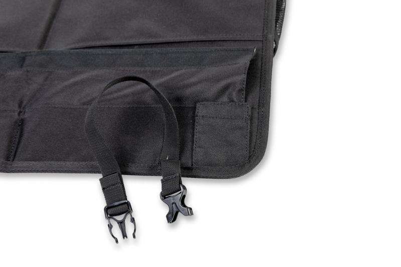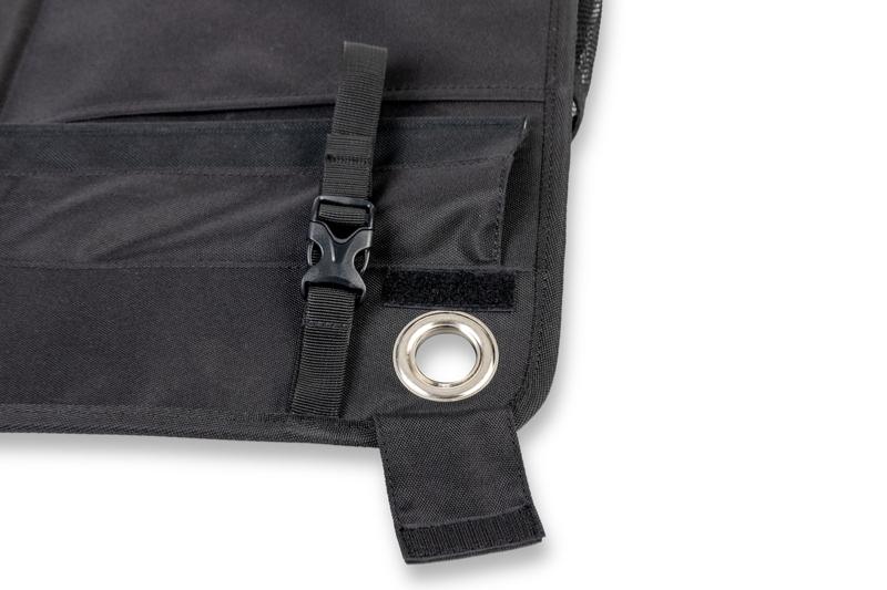 L'organiseur peut être fixé à l'aide d'œillets, d'un passepoil (7 mm de diamètre) ou de trois sangles réglables.