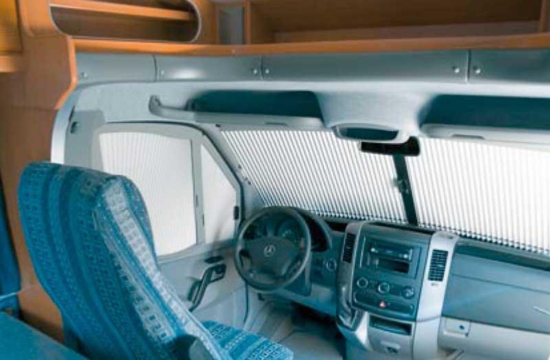 Pour l'occultation complète de la cabine, il convient d'ajouter le store pare-brise REMIS réf 374170,réf 37417, réf E5926 ou réf E6133 ci-dessous :