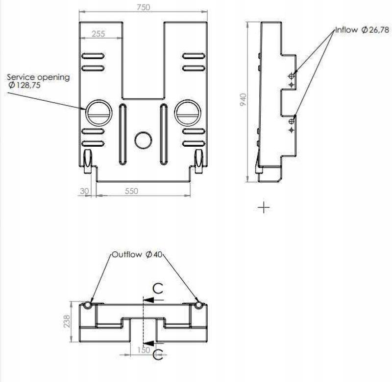 Ce réservoir convient pour les eaux usées ou les eaux grises et dispose de deux ouvertures de service (Ø 12 cm).