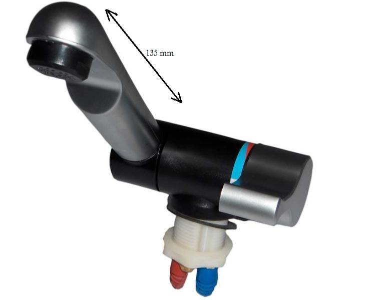 Le robinet MONO MIX, STYLE 2002 est équipé avec un bec de 135 mm tournant et pivotant