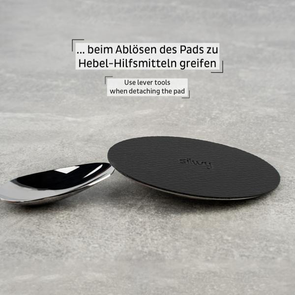Grâce à une couche spéciale de gel adhésif, les silwy pads peuvent être retirés à volonté sans laisser de traces, sont lavables et réutilisables.